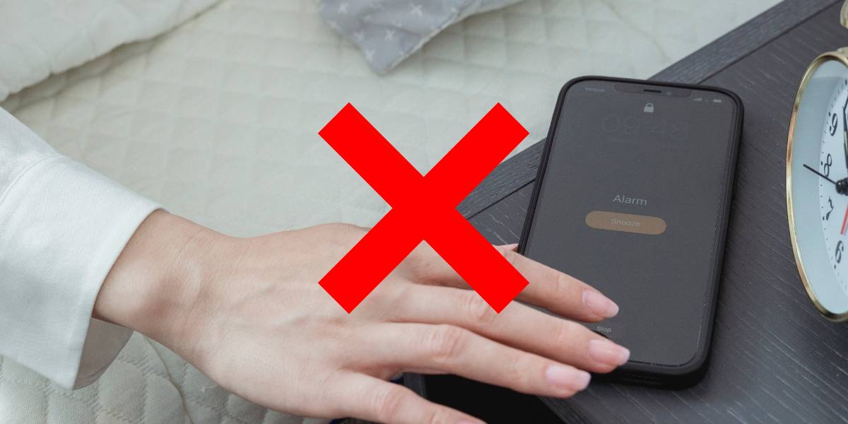 Instead put your alarm clock/phone in another room or at least across the room so you are forced to get up to shut it off. Don’t go back to bed!
